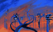 With all the attention being paid to the animated characters of Space Jam, one could easily forget the lovely backgrounds that were rendered for the animated sequences. Click on any thumbnail image below to see a larger version of the scene.